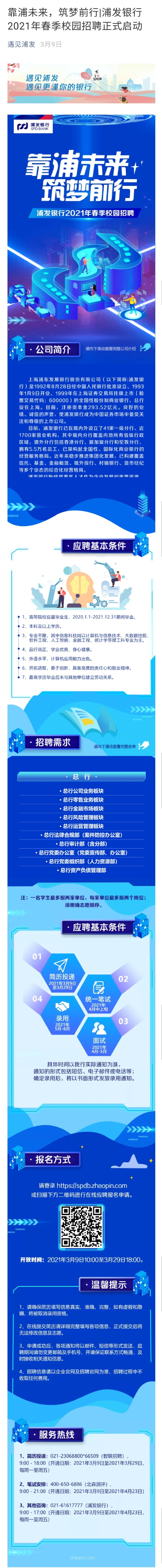 【招聘信息】240-202103浦发银行春季招聘