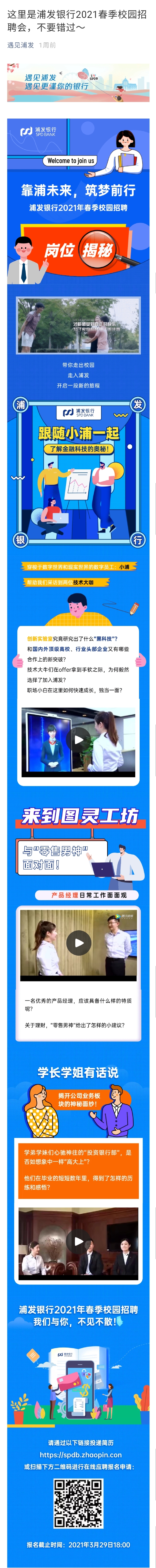 【招聘信息】250-202103浦发银行科技子公司春季校园招聘