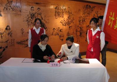 赵兵副局长、王佳丽老师分别致词。随后双方签订共建协议书,并由周洁明老师向“渔阳里”授铜牌。我院杨辉同学作为志愿者代表发言,并接受志愿者胸牌。