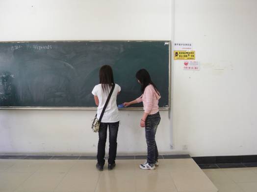 5月13日下午,我院“菁菁家园”项目组同学对北校区教学楼的黑板和讲桌进行擦洗,这是继“节能关灯”和“清洁校园白色垃圾”后的又一项感恩回馈学校的活动。同学们希望尽自己的一份力为我校师生营造一个良好的教学和学习环境,为校园增添了一抹亮丽的色彩。