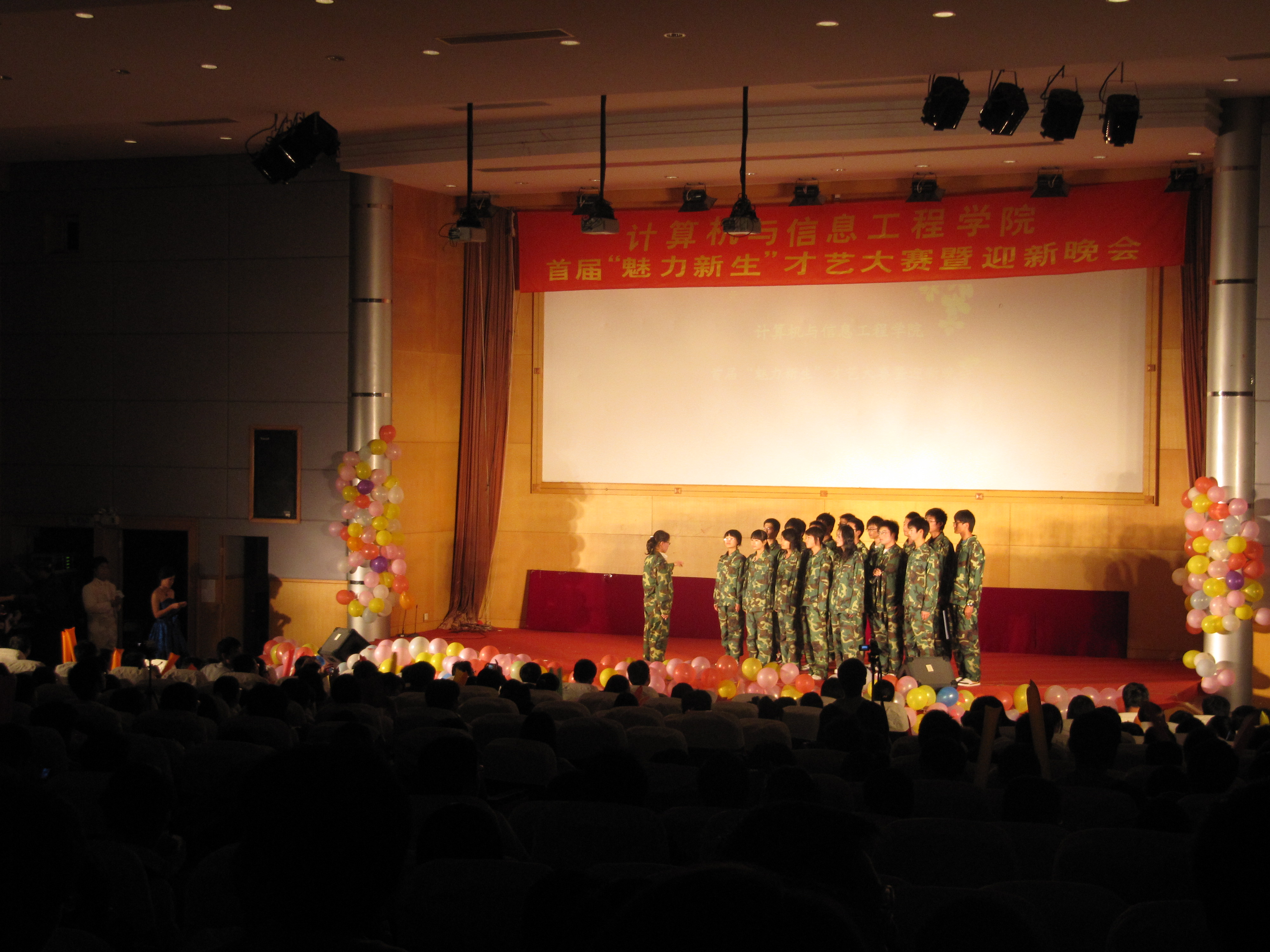 晚会随着武术协会同学们的英武亮相,晚会正式拉开了序幕。同学们用优美的舞姿和嘹亮的歌声诠释了计信新生的风采与美丽。整个会场不时传来阵阵欢呼和喝彩,男生版的“NOBODY”更是将晚会的气氛推向了高潮,之后的游戏互动环节则让新生同学们尽情参与其中,感受到学院家庭般的温馨。本次晚会采取班级对抗形式,每个班级都以高涨的热情积极参与。最终2009112班的小品表演《我和爸爸换角色》拔得头筹。