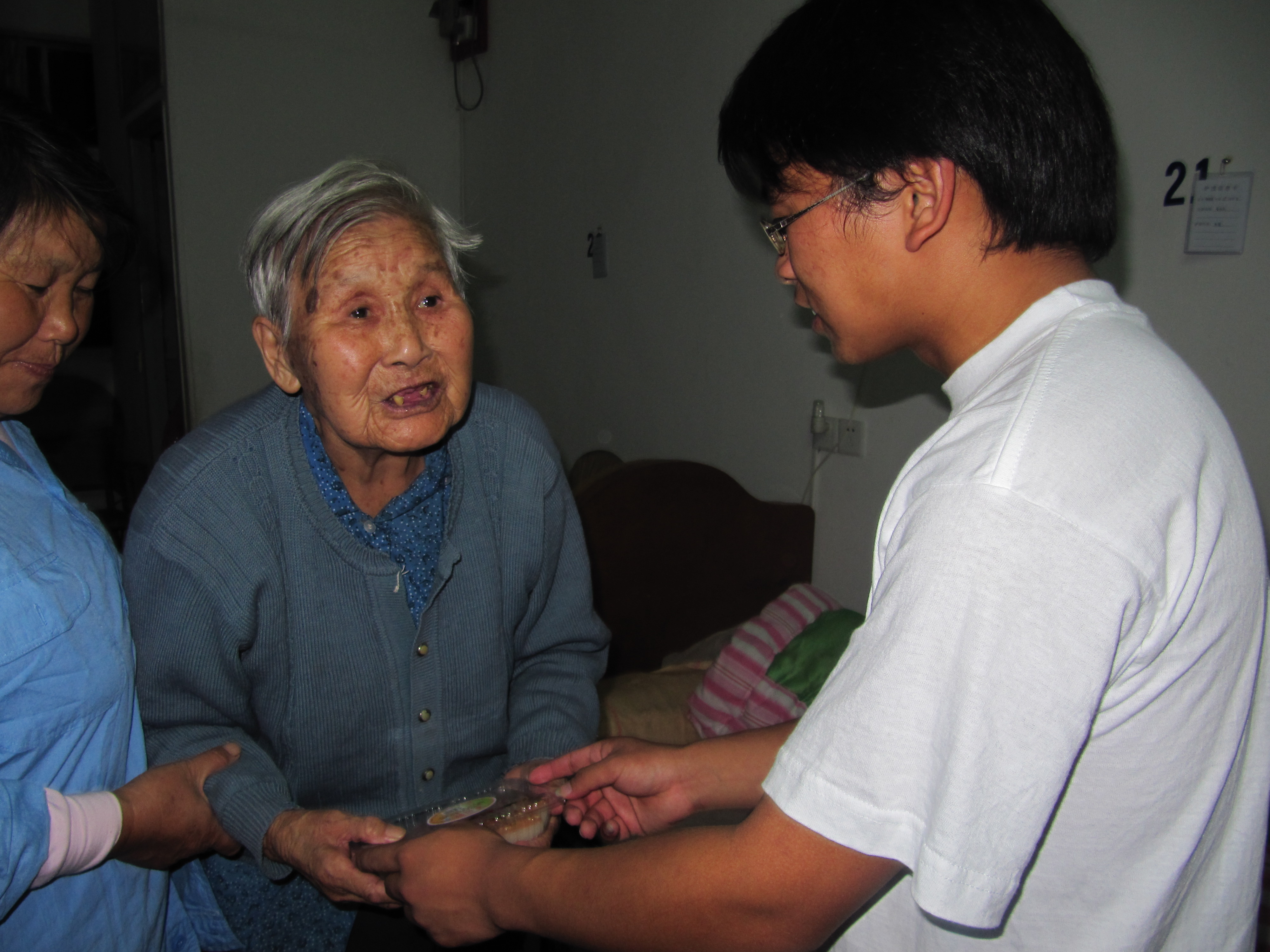 10月26日是今年的重阳节。我班和计信学院爱心接力棒项目组的几名代表一同前往浦东新区惠南镇心悦南老院送上重阳节的温暖。同学们为老人们送上传统节日食品――重阳糕,并和老人们聊聊家常,这点小事让老人感受到家的温暖。通过这次活动,班级同学希望倡导全社会都树立起尊老、敬老、爱老、助老的良好风气。
