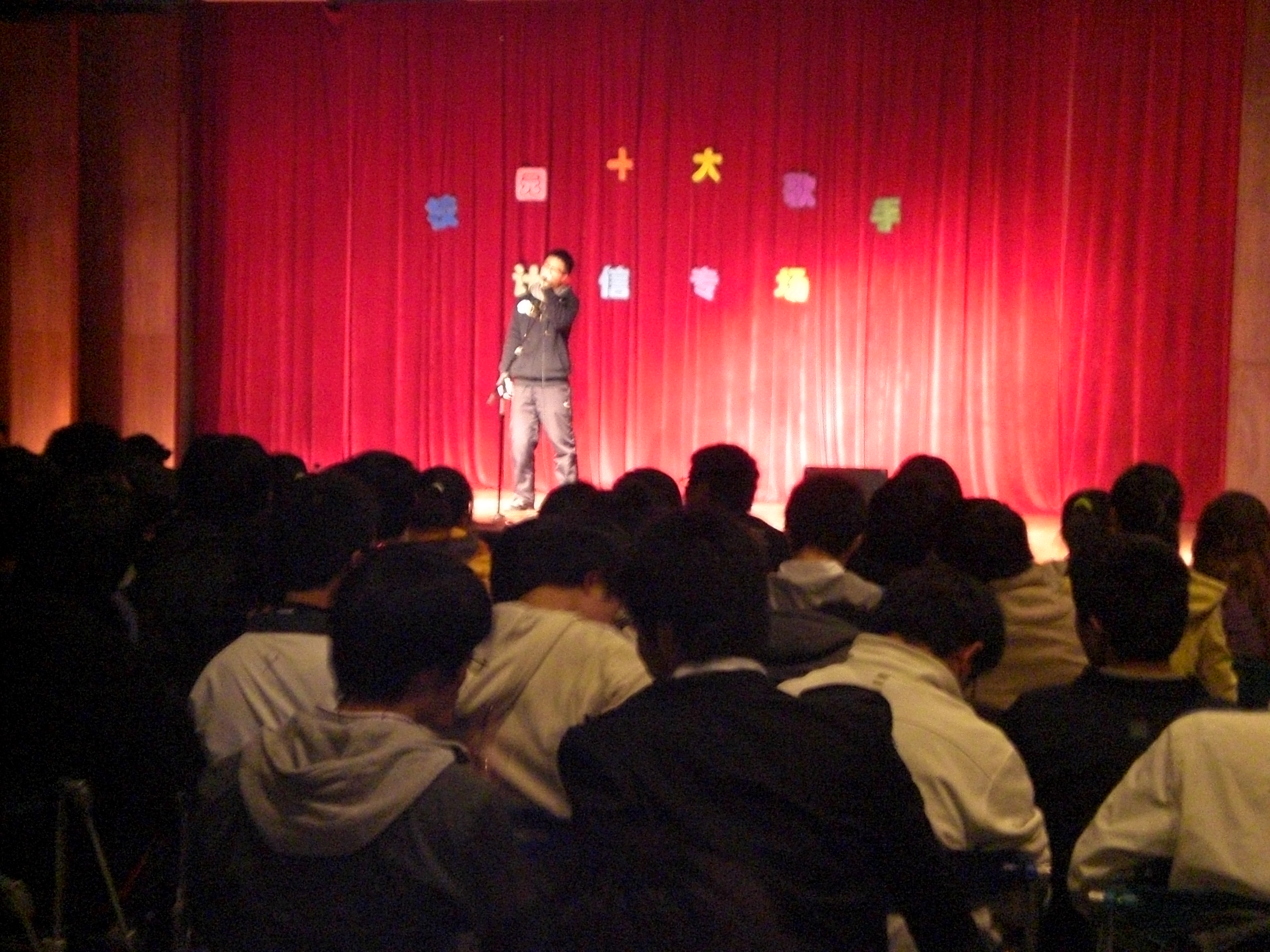 开赛伊始,主持人热歌出场,气氛顿时活跃起来。紧接着各位选手在台上大放异彩,有甜美的女声,抒情的男声,还有的自弹自唱,改编歌曲,可谓是精彩纷呈。中场请来09071的同学为大家表演舞曲《Gee》点燃了全场热情。而台下的评委老师们也被参赛者那淳朴的声线和丰富的感情深深感染着。最终,09074周婧以深情的红歌《唱支山歌给党听》赢得初赛桂冠,09142的张卓放和09251的朱晓白也表现出很好的演唱功底。