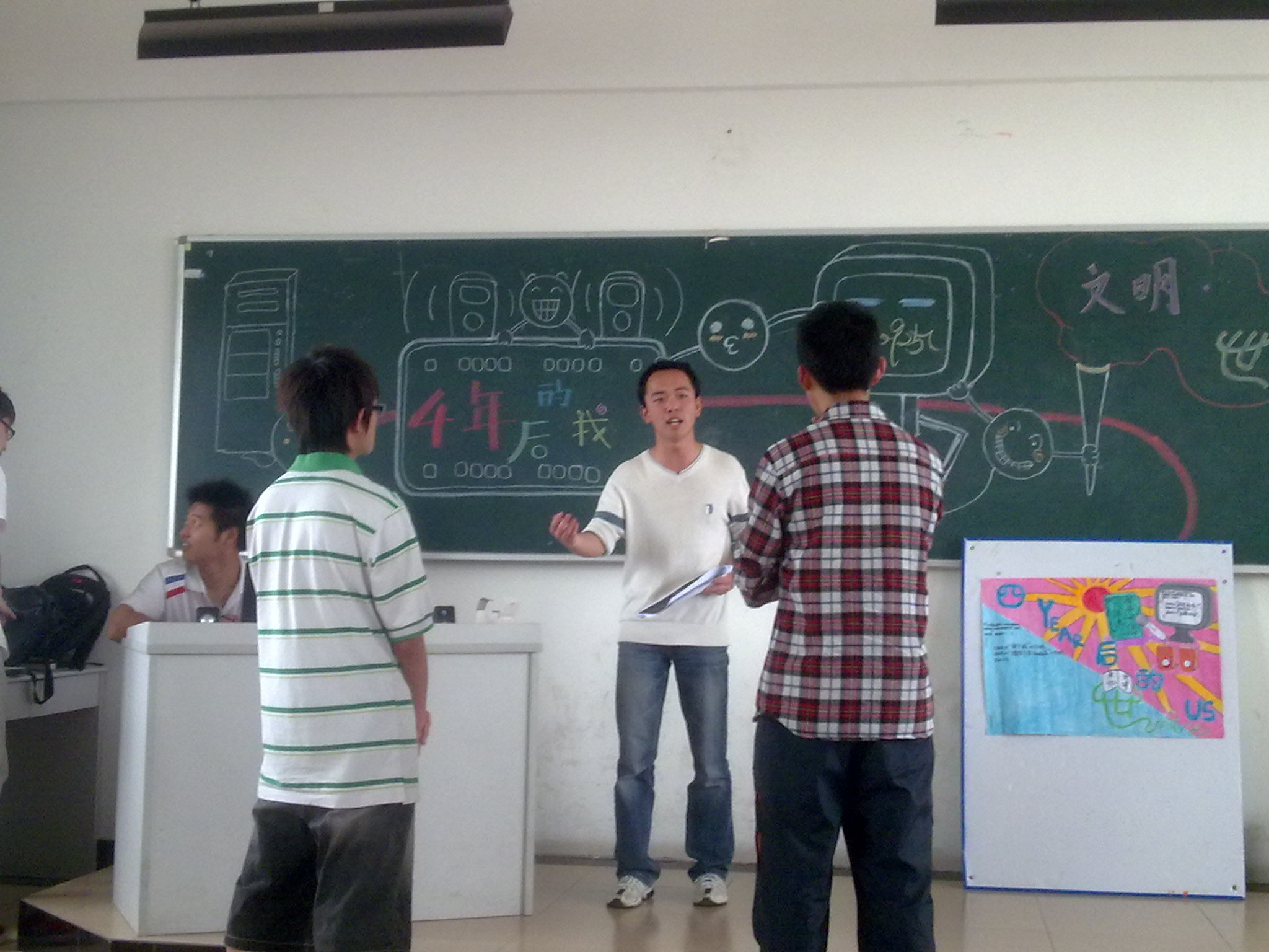 最后六个小组讨论后派出代表,表述了自己以及小组成员未来大学生活的规划,并对同学和班级的未来发展送上诚挚的祝福。